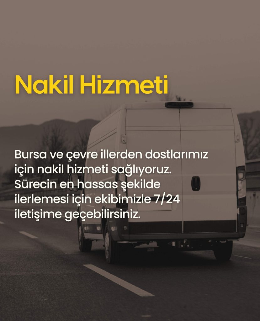 Acınızı yaşarken pratik detaylarla yorulmanızı istemiyoruz. Bursa içi ücretsiz nakil hizmetimizle, tüm süreci sizin için biz yönetiyoruz.