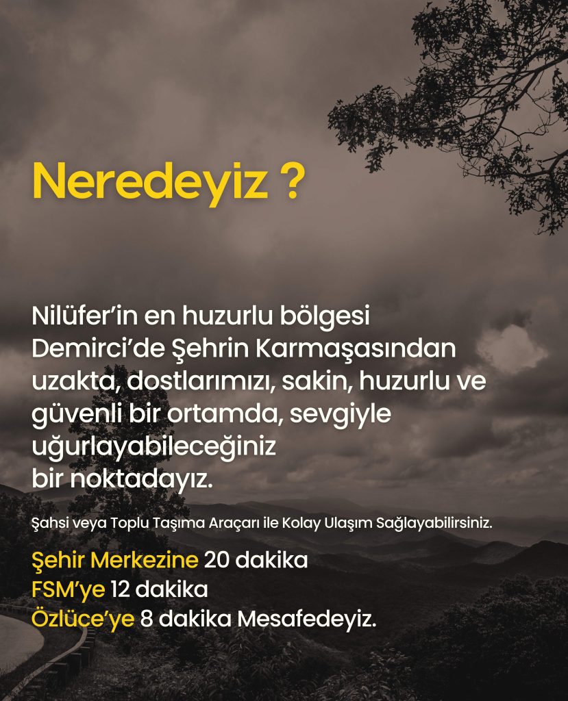 Nilüfer'deki sakin ve doğal mezarlığımız, O'nu dilediğiniz zaman ziyaret edip anılarınızı tazeleyebileceğiniz, size özel bir yerdir.